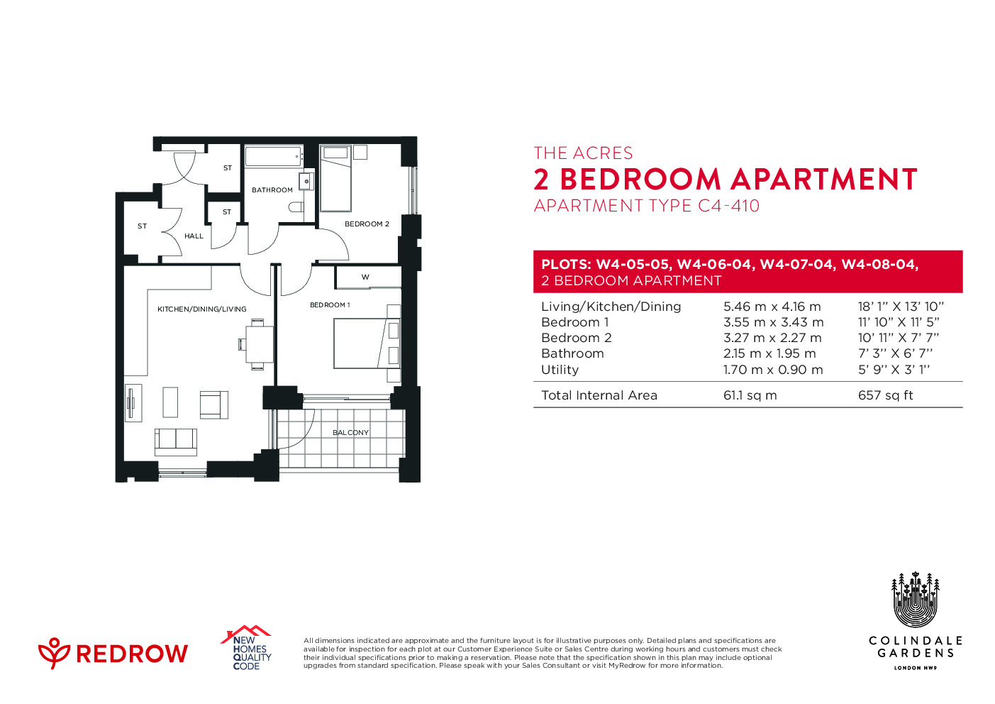 • Total area: 657 sq ft /61.1 sq m